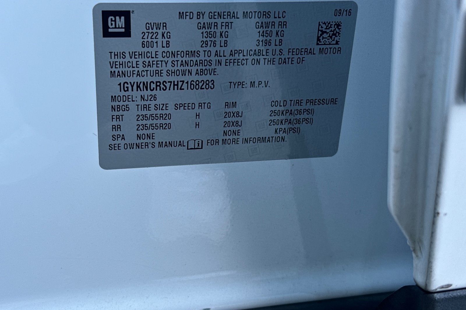 - Tires, P235/55R20 all-season, H-rated, blackwall