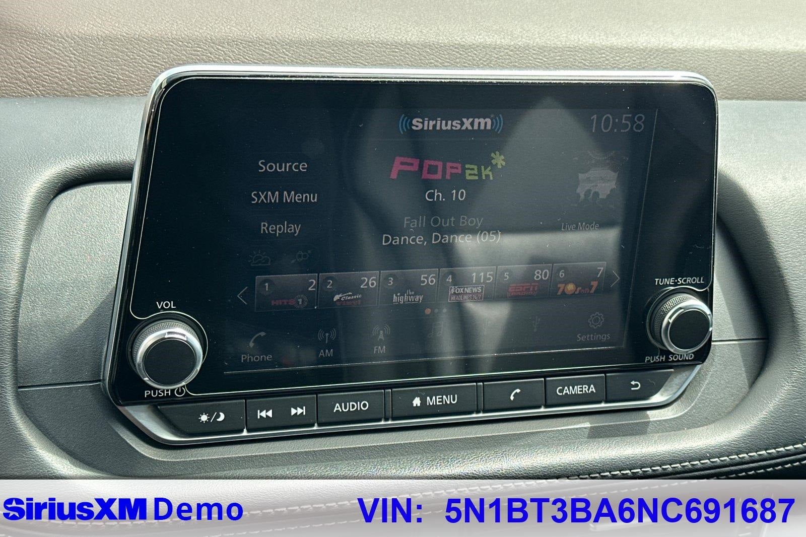 - Radio: AM/FM -inc: 6 speakers, NissanConnect featuring Apple CarPlay and Android Auto, 8" color display w/multi-touch control, SiriusXM satellite radio, 2 illuminated USB connection ports (1 type-A, 1 type-C), Bluetooth® hands-free phone system, streaming audio via Bluetooth® and hands-free text messaging assistant